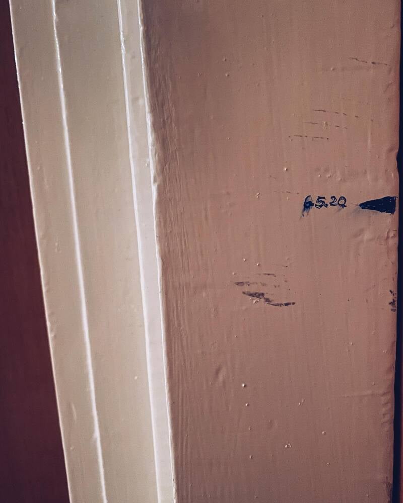 Onako starinski, zastala sam večeras ispred ove oznake koju je tvoj tata kemijskom nacrtao na vratima tvoje sobe.